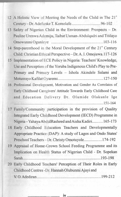Journal of Early Childhood Association of Nigeria. Vol. 3, N0. 1, March 2013.