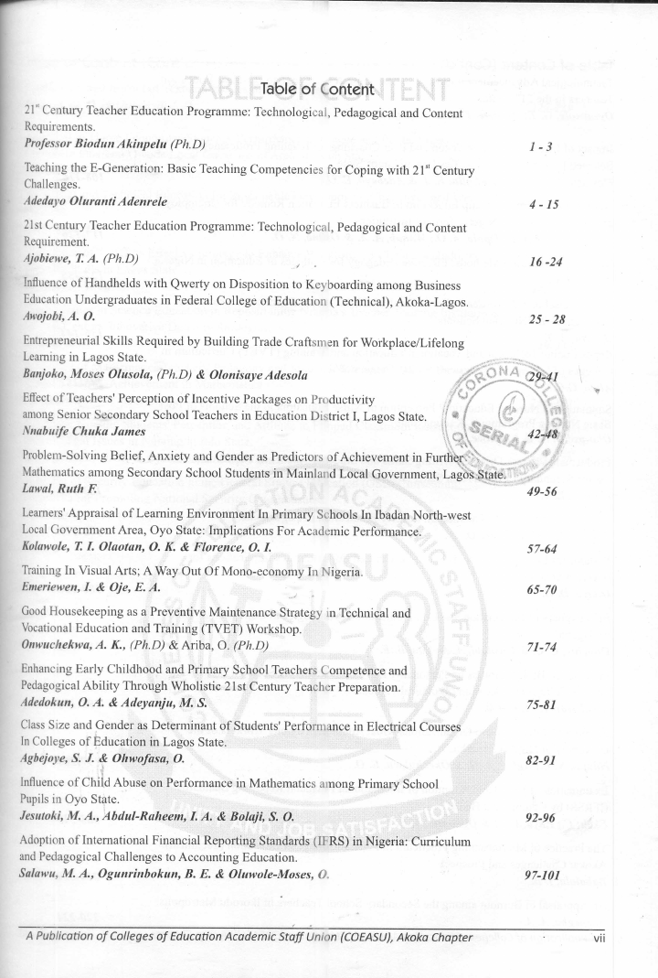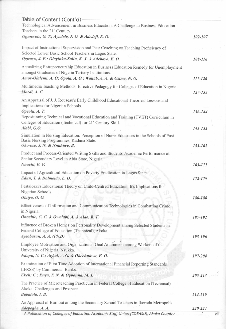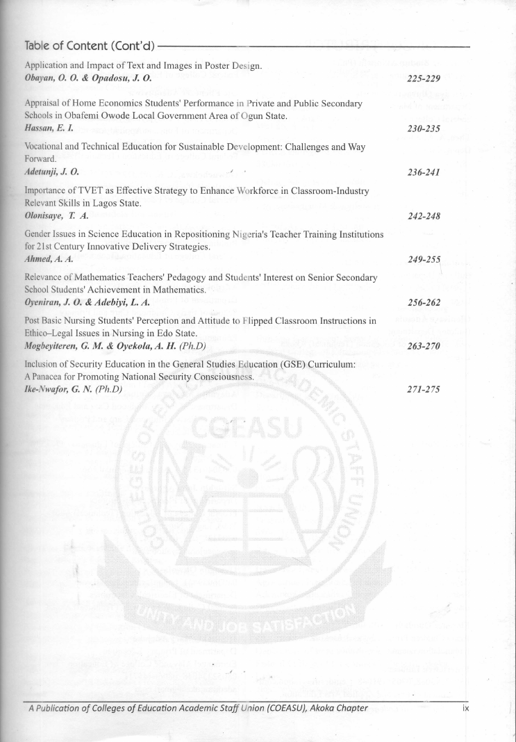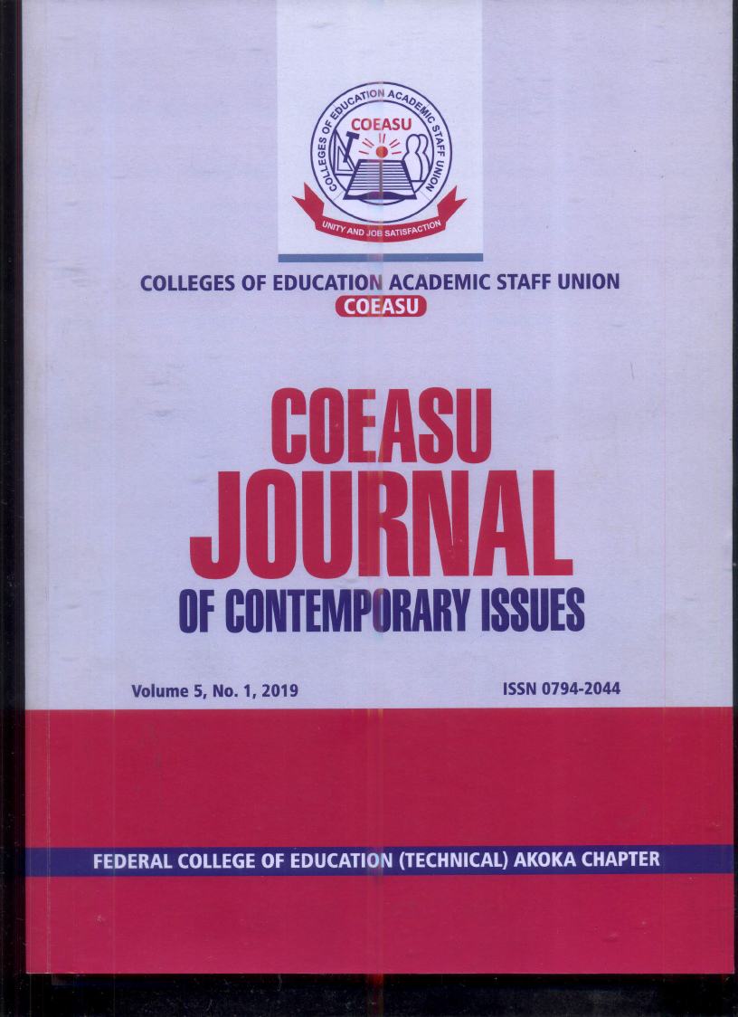 COEASU Journal of Contemporary Issues. Vol. 5 N0.1, 2019